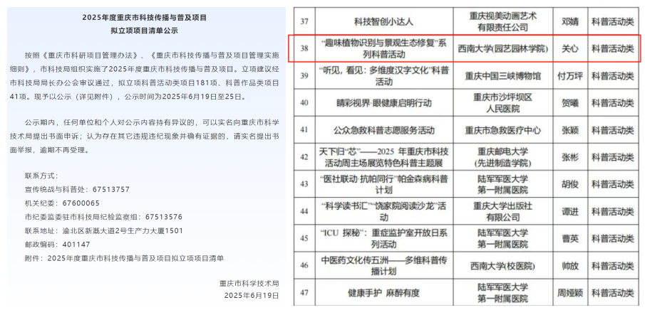 重庆市科学技术局近期发布《2025年度重庆市科技传播与普及项目拟立项项目清单》,由韩国h漫 党委承办、学生党员教育...